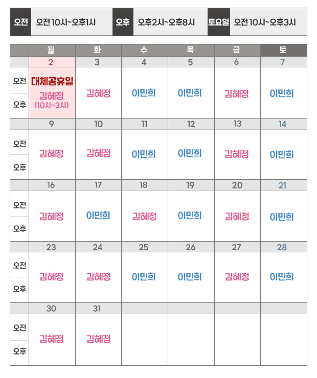 일요일 : 휴진